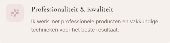 Mijn doel is om een plek te creëren waar jij je welkom voelt, waar je even kunt ontsnappen aan de drukte en waar je met een goed gevoel de deur uitgaat. Daarom werk ik bewust vanuit een huiselijke setting in Schijndel. Geen grote, afstandelijke salon, maar een warme plek waar je jezelf kunt zijn. Ik neem de tijd voor je, luister naar je wensen en denk met je mee. Of je nu komt voor een nieuwe kleur nagels, een frisse knipbeurt of een beautybehandeling: ik wil dat jij je gehoord voelt en met een glimlach vertrekt.